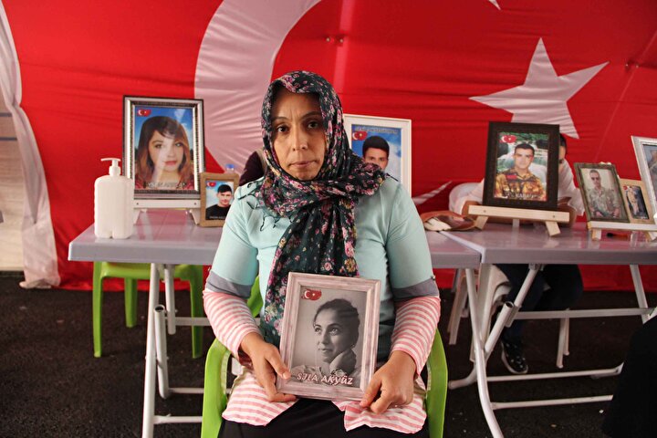 2013'te İstanbul'da misafirliğe gittiği sırada terör örgütü PKK tarafından kaçırılan kızı Sıla için Adana'dan gelen Hanife Akyüz, HDP Diyarbakır İl Başkanlığı önündeki evlat nöbetine katıldı. Kızını bulamayınca HDP'ye gittiğini söyleyen Akyüz, kendisine 'Kızının yerine ulaştığı' yanıtını verdiklerini söyledi. Kızına teslim olması için çağrıda bulunan Akyüz, "Bu anneleri görünce ben de bir umut var diye düşündüm. Kızıma diyorum, bu acıyı bana yaşatmasın yeter artık. Gelsin evine dönsün, bize ve devlete inansın, gelsin. 7 yıldır gitmiş, telefon numaramı bile değiştirmedim. Şaşırıp beni aramadı hiç. Polise başvuru yaptım, her yeri aradılar. HDP binalarına gittim, dediler 'Biz de yok.' Bir hafta geçti sonra geldiler, 'Merak etme bizde. Bir yere sormana gerek yok. Ben orada tepki gösterdim. Bana kızımın 'yerine ulaştığını' söylediler. Benim kızım benden ayrı kalamazdı. 16 yaşındaydı, 2 dakika geç kalsaydı, ben şuradayım merak etme diye söylerdi" dedi.