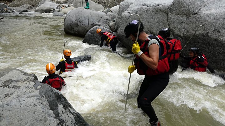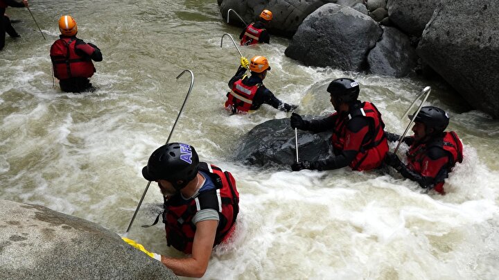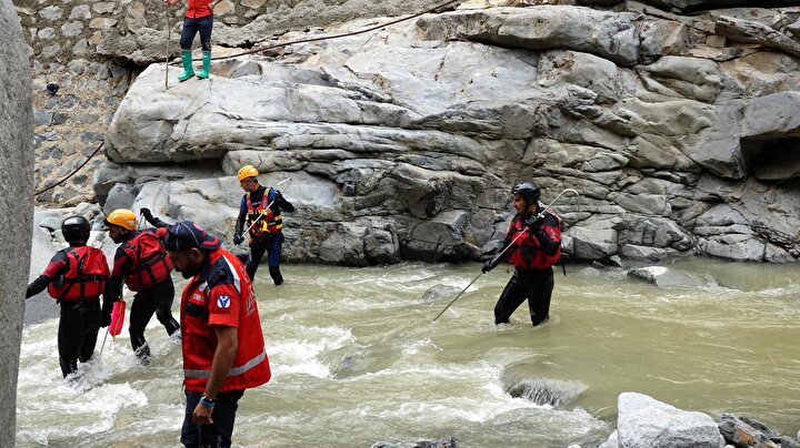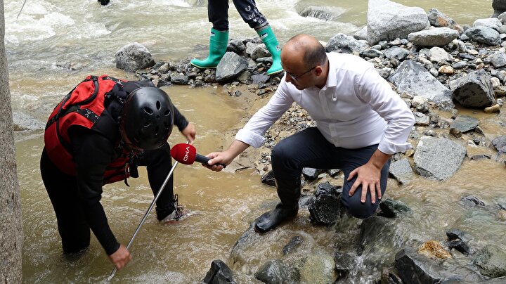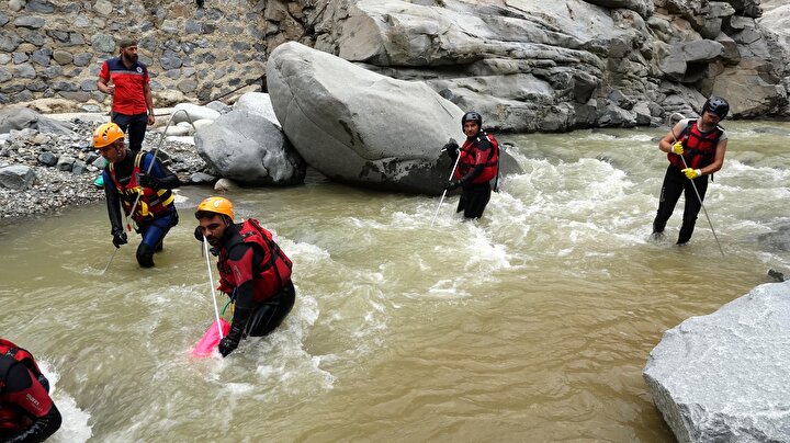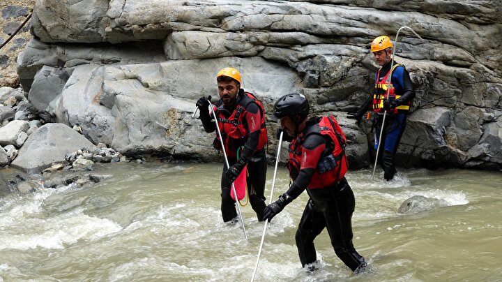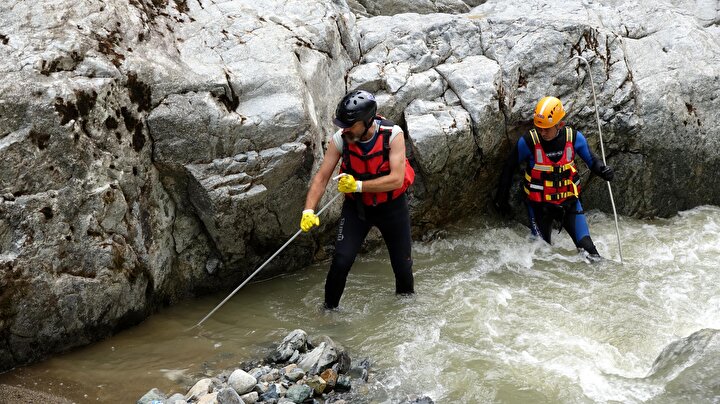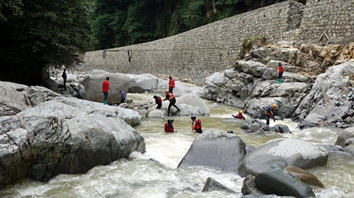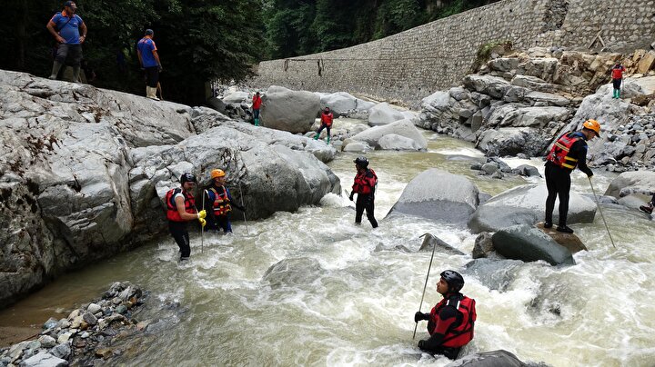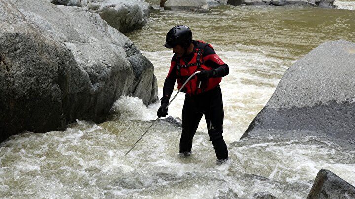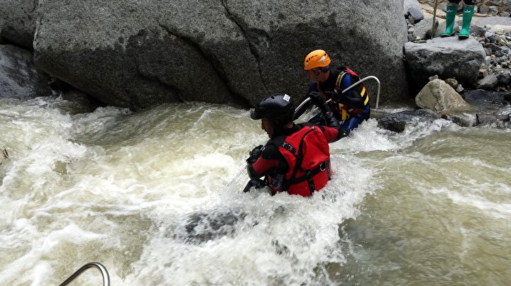 Güneysu ilçesi Ballı Dere’de Erzurum, Samsun ve Balıkesir’den takviye gelen AFAD ekipleri, dere yatağında zor şartlarda aramalarını sürdürüyor. Dalgıçlar, yer yer insan boyunu aşan derede, akıntına rağmen her taşın altını didik didik arıyor. Ekipler, iz takip köpeklerinin de eşlik ettiği çalışmalarla bölgede kayıplara dair ize ulaşmaya çalışıyor.
