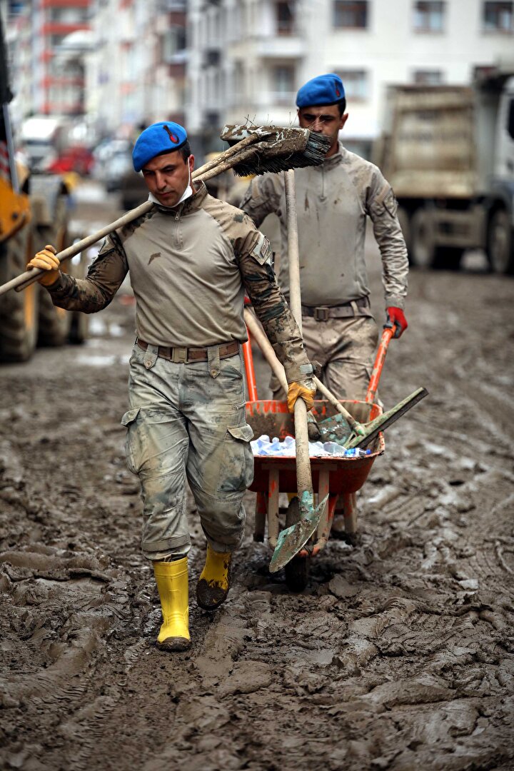 Rize ve Artvin'de yaşanan, 6 kişinin hayatını kaybettiği, 50'ye yakın yapının yıkıldığı, bin 500'e yakın yapının ağır hasar aldığı, alt ve üst yapıda hasarların oluştuğu sel ve heyelan felaketinin izleri silinmeye çalışılıyor. İki kentte 4 bini aşkın personelin katılımıyla çöken yollar onarılıyor, alt ve üst yapılar yenileniyor, cadde ve sokaklarda balçık temizleniyor. Rize'de iki, Artvin'de selde kaybolan bir kişiyi arama çalışmaları da sürüyor.