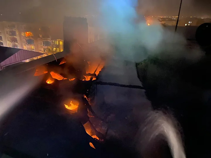 Ekiplerin müdahalesi sonucu söndürülen yangında binanın çatı katında hasar oluştu.