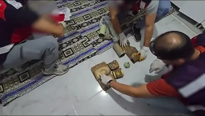 Operasyon düzenleyen ekipler, evin mutfak kısmında poşetler içine gizlenmiş 4 heykel, 11 kitabe, 1 tablo ve 4 kitabe koruma kabı ele geçirdi.