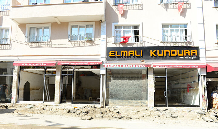 İlçede çok sayıda iş yerinin temizliği bitme aşamasına geldi. Esnaf, dükkanlarının iç dizaynını yaparak kullanıma hazır hale getirmek için uğraş veriyor. İş yerlerini temizleyen esnafın cam ve çerçevelerinin takılması işlemleri devam ediyor.