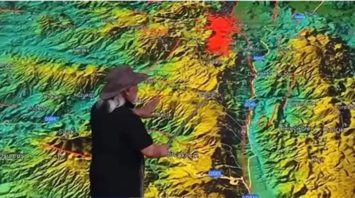 "Simav'da birçok artçı depremler oldu ama Simav depremi değildi. Simav Dağı'nın böyle yüksek olmasının sebebi de yukarı doğru yükseliyor dağ, önü çöküyor ve depremler bu hat boyunca dizilmiş oluyor. Şimdi haritada bir kırmızılık var. Bu beni düşündürür. Bu da artçı mı yoksa yeni depremin öncüleri mi? Yani burada birincisi kırıldı bunun dibinde. O artçılar hep buradaydı. İkinci buraya geldi, burası kırıldı. Bir yerde daha kümelenme var. Burada da aynı şekilde bir 6'lık deprem olabilir. Şu an gözlemlediğimiz hareketlilik, yeni bir kırılmanın habercisi olabilir. Burada 6 civarında yeni bir deprem yaşanma olasılığı var"