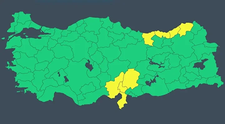 Meteorolojinin sarı kodla uyardığı iller: Adana, Artvin, Giresun, Hatay, Kahramanmaraş, Osmaniye, Rize, Trabzon