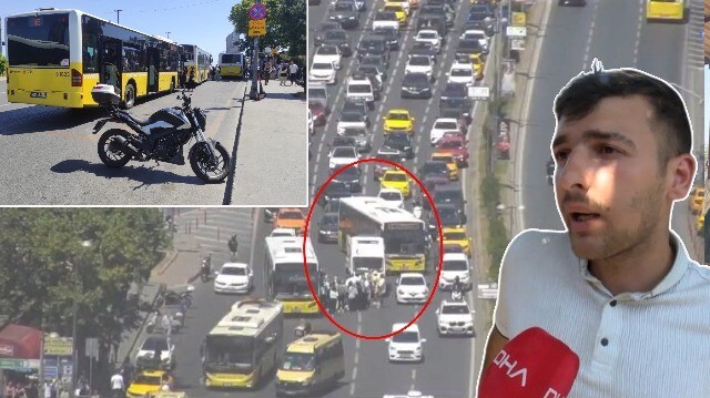 İsmini vermek istemeyen İETT şoförü “Kaza, ben cebe girerken arkadaş sol taraftan motorun üzerinden düşmüş. Düşünce arabanın altına girmiş. Ben son anda fark ettim. Yolcular bağırdı ve durdum. Düşen kişinin durumu iyi. Polisler konuştu. 'Bir şeyim yok' demiş. Aracın altından değil motordan düşünce kafasını yere vurmuş. Tedbir amaçlı hastaneye götürdüler. Arabanın altına girmedi. Ben durduğumda aracın yan tarafındaydı" diye konuştu.