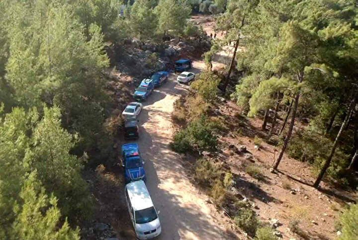 Küçük kızın cesedinin bulunduğu ormanlık bölge görüntülenirken, bölgenin yoğun ağaçlık alandan oluştuğu görüldü.