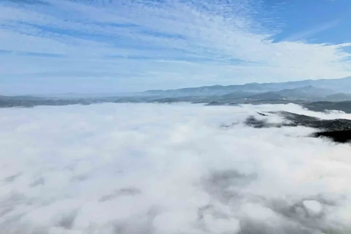 Balıkesir’in Sındırgı ilçesi sabah saatlerinde yoğun sisle kaplandı. İlçe genelinde etkili olan sis, hem sürücülere zor anlar yaşattı hem de ortaya kartpostallık görüntüler çıkardı.