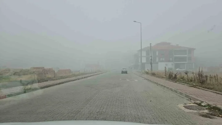 Gece saatlerinden itibaren etkisini göstermeye başlayan sis, sabahın ilk ışıklarıyla birlikte ilçe merkezini tamamen sardı. Görüş mesafesi yer yer 20 metreye kadar düştü.
