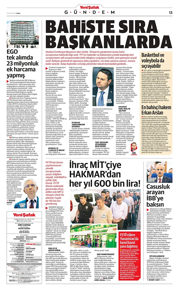 Yeni Şafak Gazetesi'nin 21 Kasım 2025 tarihli sayısına hoş geldiniz. Gündem, spor ve ekonomi sayfalarımızda bugünün öne çıkan haberlerini keşfedin.