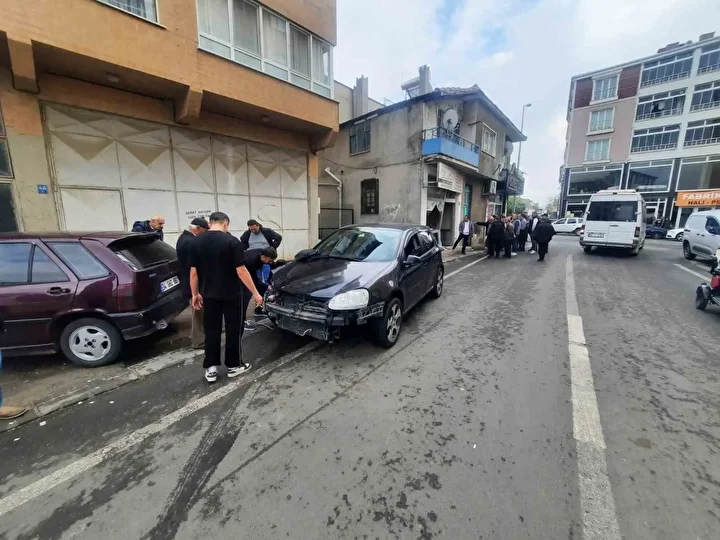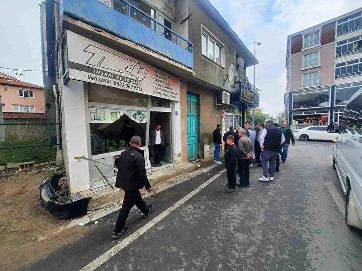 Çarpmanın etkisiyle araçta ve iş yerinde hasar oluşurken, çevredeki vatandaşlar büyük panik yaşadı.