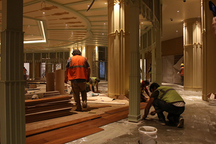 Caminin alt katındaki çok amaçlı salondaki çalışmalar ise, açılışa yetiştirilebilmesi için son hızla devam ediyor.