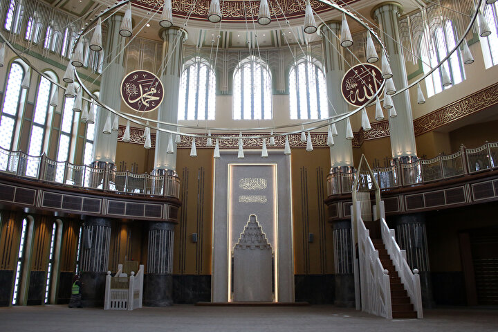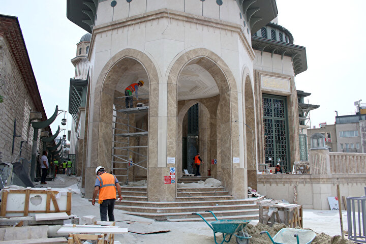 İstanbul Takism'de yapımı tamamlanan ve ibadete bu cuma açılması planlanan camide son düzenlemeler yapılıyor. Caminin giriş kubbesi göbek yazısında İhlas Suresi, giriş kubbesi kasnak yazısında Ayet-el Kürsi ve sonraki ayet, ana kapı üstü yazısında Nisa Suresi'nin 103. ayetinin son kısmı ve İstiklal girişi kapı üstüne ise Ra'd Suresi'nin 24. ayeti yazıldı. Caminin iç alanına Allah, Muhammed, Ebubekir, Ömer, Osman ve Ali isimlerinin yer aldığı 6 hat levha asıldı. İçerisinde otopark, konferans ve sergi salonlarının da yer aldığı, 2 bin 250 kişinin aynı anda namaz kılabileceği cami, 2 bin 482 metrekare arsa alanına, yaklaşık 16 bin 500 metrekare de inşaat alanına sahip.