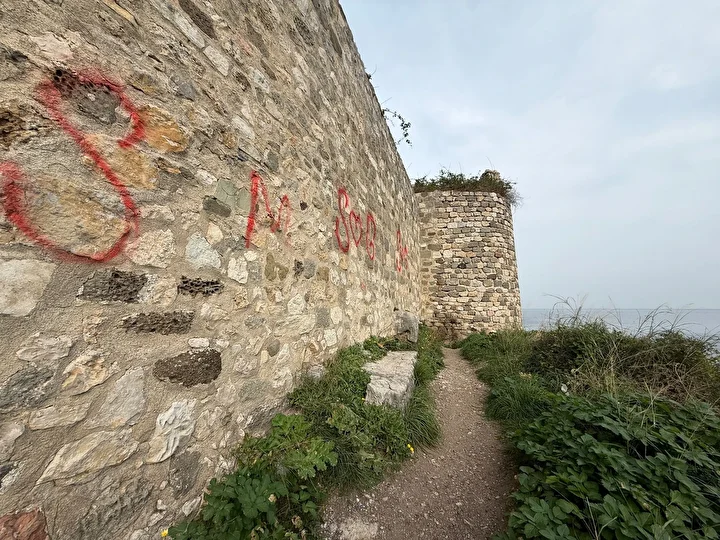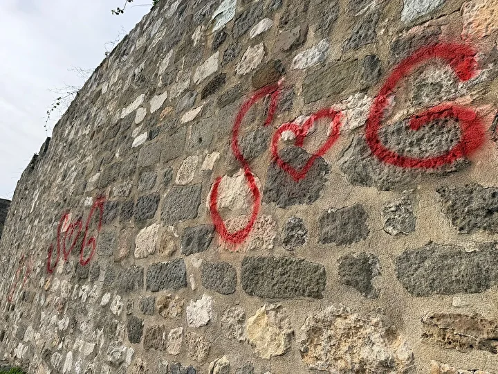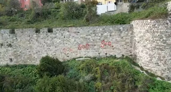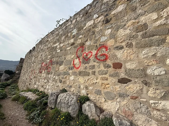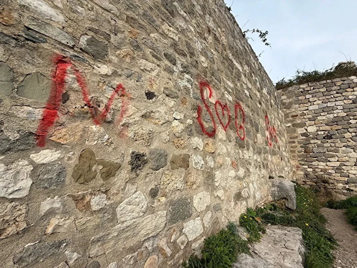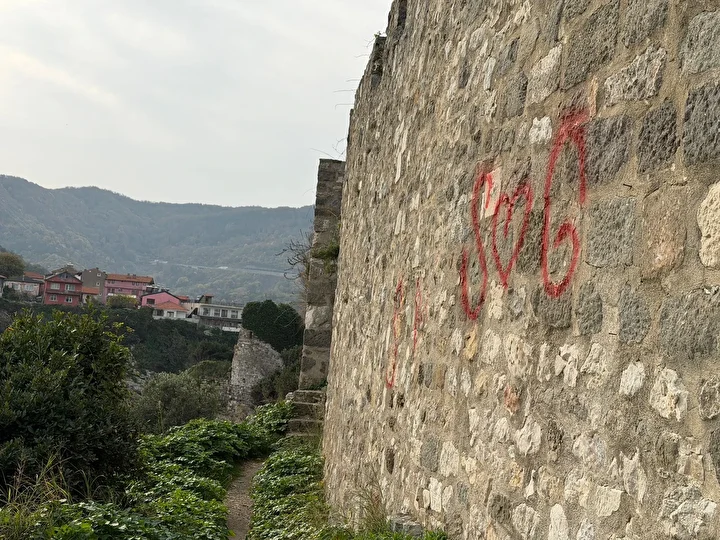 Bartın'ın Amasra ilçesindeki, tarihi Amasra Kalesi'nin duvarlarına, kimliği belirsiz kişi ya da kişiler tarafından sprey boyalarla yazılar yazıldı. Çevredeki güvenlik kameralarını inceleyen polis, şüphelileri arıyor.