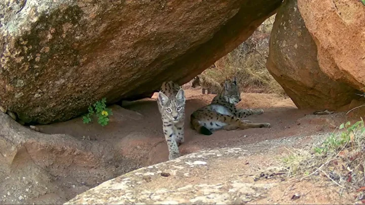Sivas’ta 2 doğa fotoğrafçısı, çok ender görülen bir olayı kaydetti. Normalde tek olarak görüntülenen vaşağı 2 yavrusu ile kayda alan doğa fotoğrafçıları, yavru vaşakların oyununu fotokapan ile görüntüledi.