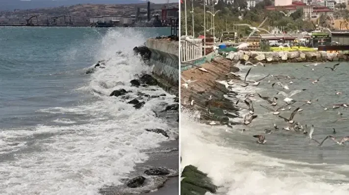 Öte yandan poyrazla oluşan dalgalar, kıyıya yosun ve çeşitli atıklar sürükledi.