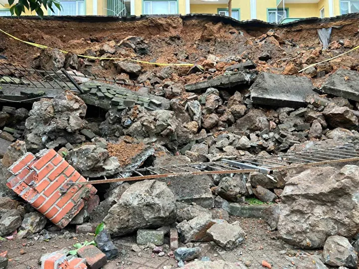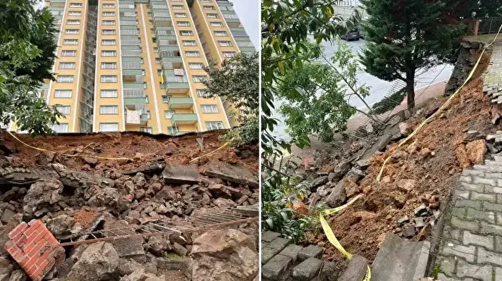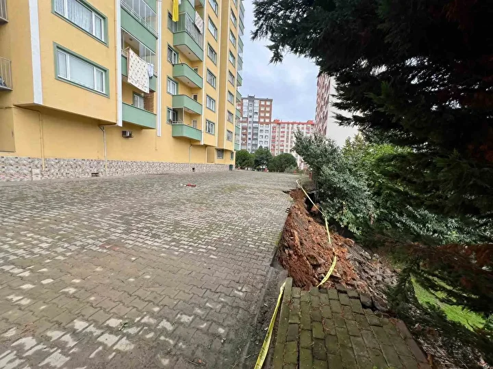 Bölgede etkili olan yağışlar sonrasında yaşanan çökme sitede panik ve korkuya neden oldu.