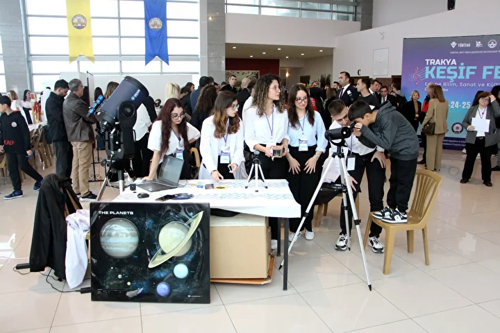 TÜBİTAK 4007 Bilim Şenlikleri Destekleme Programı kapsamında, Trakya Üniversitesi (TÜ) Sosyal Sorumluluk Uygulama ve Araştırma Merkezi tarafından hazırlanan ‘Trakya Keşif Fest: Edirne Bilim, Sanat ve Kültür Şenliği’ açılış töreniyle başladı. Kentte 3 gün sürecek festivalin TÜ Balkan Kongre Merkezi’ndeki açılışına Edirne Valisi Yunus Sezer, Edirne Belediye Başkanı Filiz Gencan, TÜ Rektörü Prof. Dr. Mustafa Hatipler, kurum ve kuruluş temsilcileriyle öğrenciler katıldı. Trakya’nın farklı il ve ilçelerinden 8 bine yakın öğrencinin katılması planlan festival hakkında Sosyal Sorumluluk Uygulama ve Araştırma Merkezi Müdür Yardımcısı Dr. Öğr. Üyesi Tuba Hatipler Çibik sunum yaparak bilgi verdi.