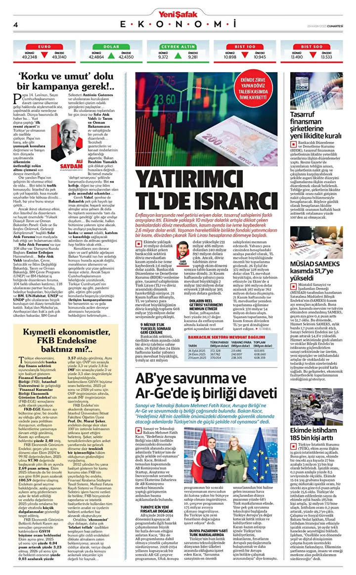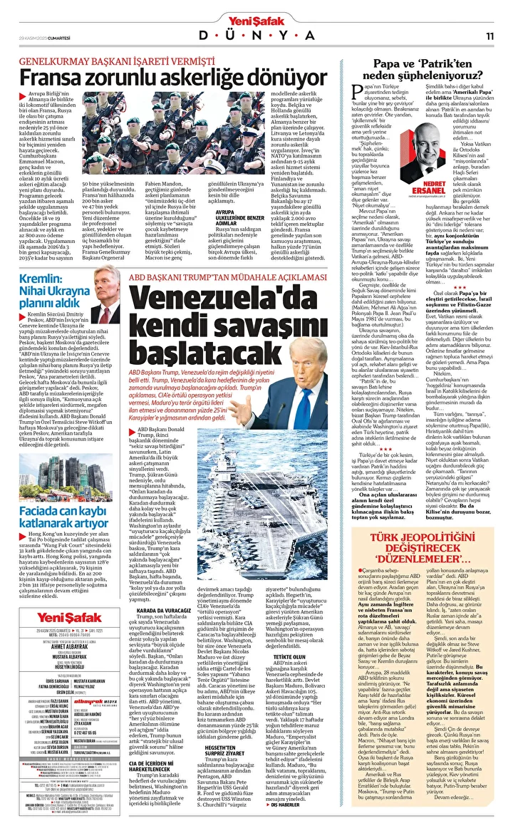 Yeni Şafak Gazetesi'nin 29 Kasım 2025 tarihli sayısına hoş geldiniz. Gündem, spor ve ekonomi sayfalarımızda bugünün öne çıkan haberlerini keşfedin.