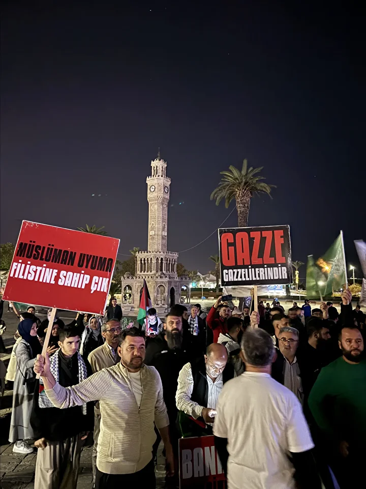 İzmir'de toplanan çok sayıda kişi, ablukayı kırmak ve insani yardım ulaştırmak amacıyla Gazze'ye doğru yol alan Küresel Sumud Filosu'na İsrail tarafından yapılan saldırılara tepki gösterildi.