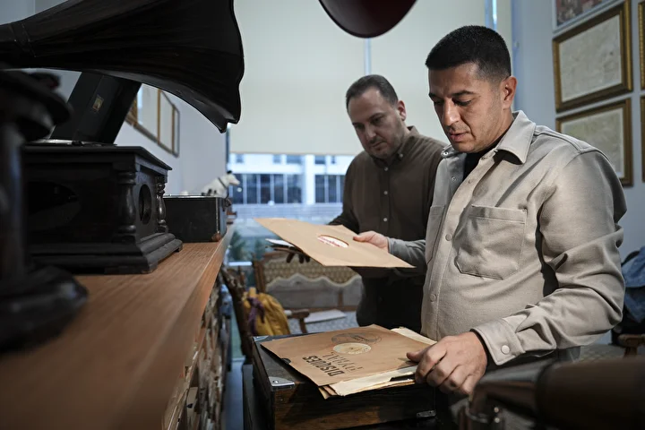 Hakan Balcı ve Yunus Savaş, farklı ülkelerden topladıkları nadir taş plakların hikayesini, koleksiyonun oluşturulma sürecini ve gramofon dinletilerini anlattı.