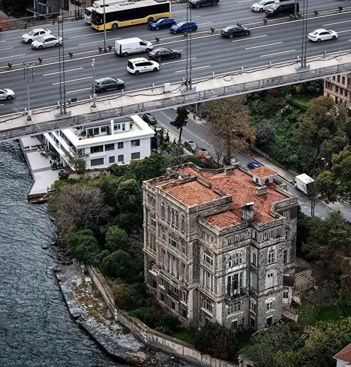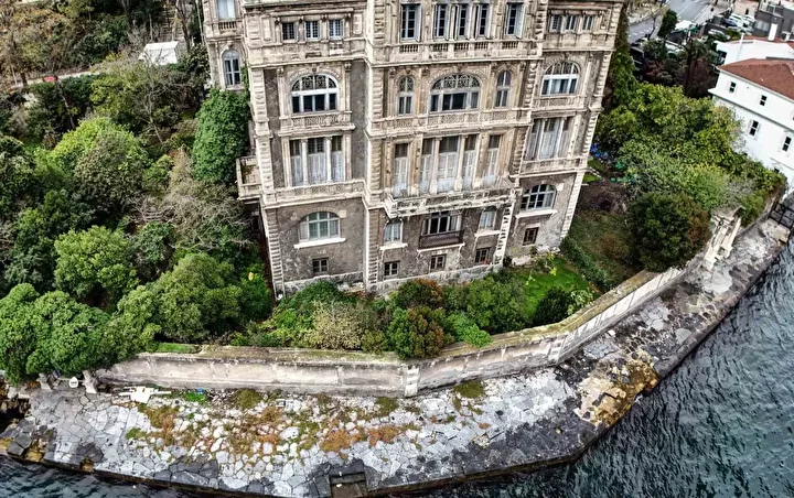 Dron ile kaydedilen görüntülerde, yalının boğazı kucaklayan benzersiz manzarası, yemyeşil bahçesi ve şatoyu andıran heybetli mimarisi tüm detaylarıyla gözler önüne serildi. Mavinin ve yeşilin iç içe geçtiği noktada yükselen bina, izleyenlerde adeta hayranlık uyandırıyor.