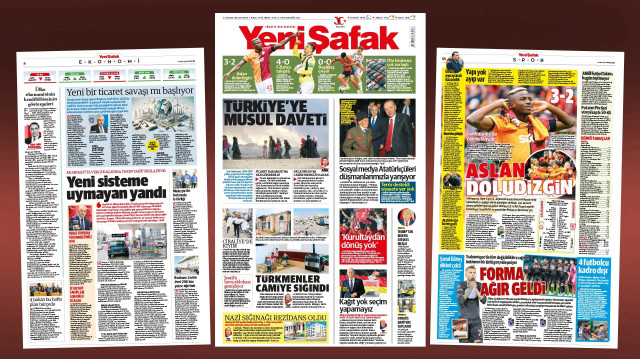 Yeni Şafak Gazetesi'nin 11 Kasım 2024 tarihli birinci sayfasında yer alan manşet ve haberler...