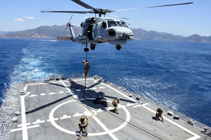 Ardından SAT timleri, TCG Gediz fırkateyninde helikopterle 'fast rope' tekniğiyle iniş yaparak, gemiyi senaryo gereği ele geçirdi. Yerli ve milli imkanlarla üretilen Tuzla sınıfı karakol gemileri tarafından denizaltılara karşı kullanılan DSH roketi ateşlendi ardından helikopter suya sonar daldırarak denizaltının yerini tespit etti.