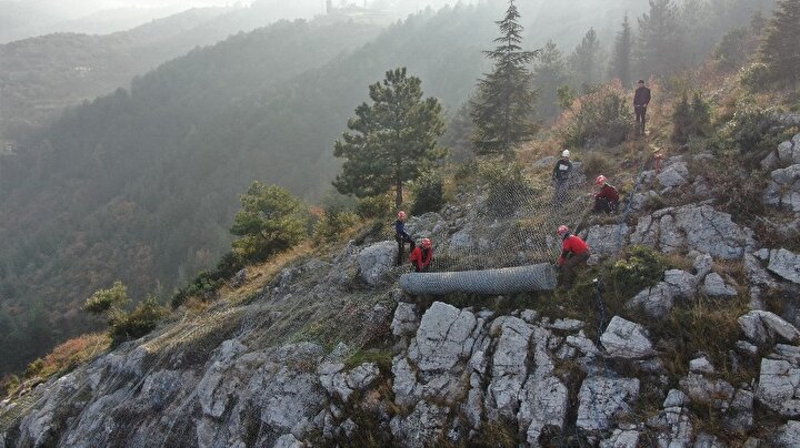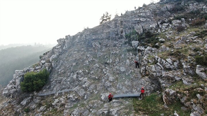 Zaman zaman yaralanma olaylarının yaşandığı mahalledeki vatandaşların şikayetlerine kayıtsız kalmayan Osmangazi Belediyesi kayaların yuvarlandığı bölgeyi çelik tellerle kaplamak için çalışma başlattı.