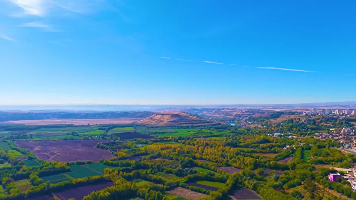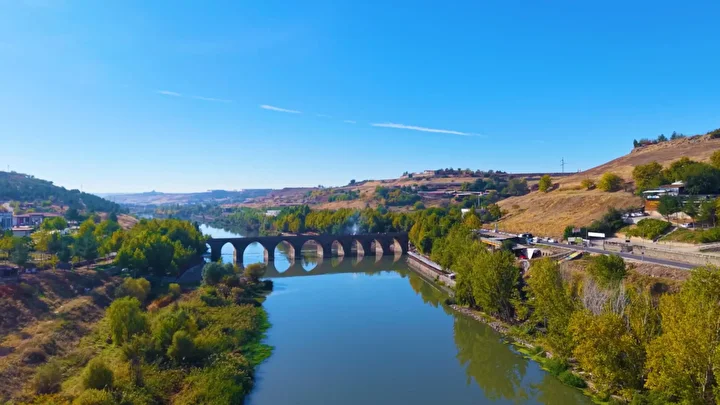 Sur ilçesindeki İçkale ve Dicle Nehri hattında yer alan, UNESCO Dünya Kültür Mirası Listesi’nde bulunan ve 8 bin yıldır tarımın kesintisiz sürdüğü Hevsel Bahçeleri’nde sonbaharda oluşan manzara dronla görüntülendi.