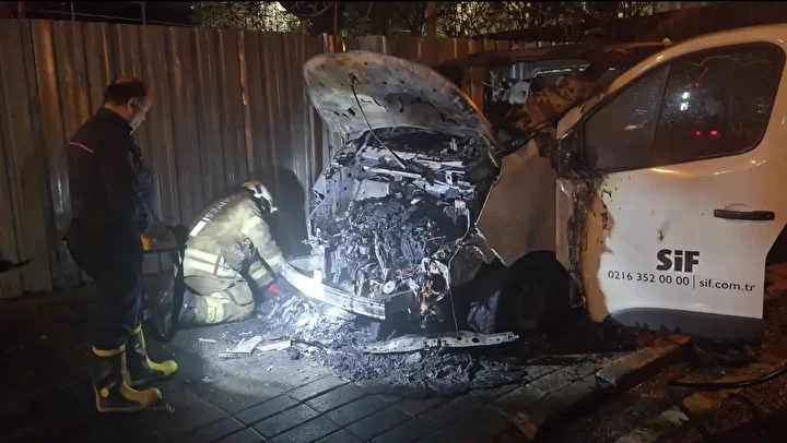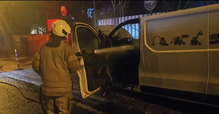 Üsküdar'da park halindeki hafif ticari araçta yangın çıktı. Alev alev yanan araçta patlamalar meydana gelirken, yangın itfaiye ekipleri tarafından söndürüldü.