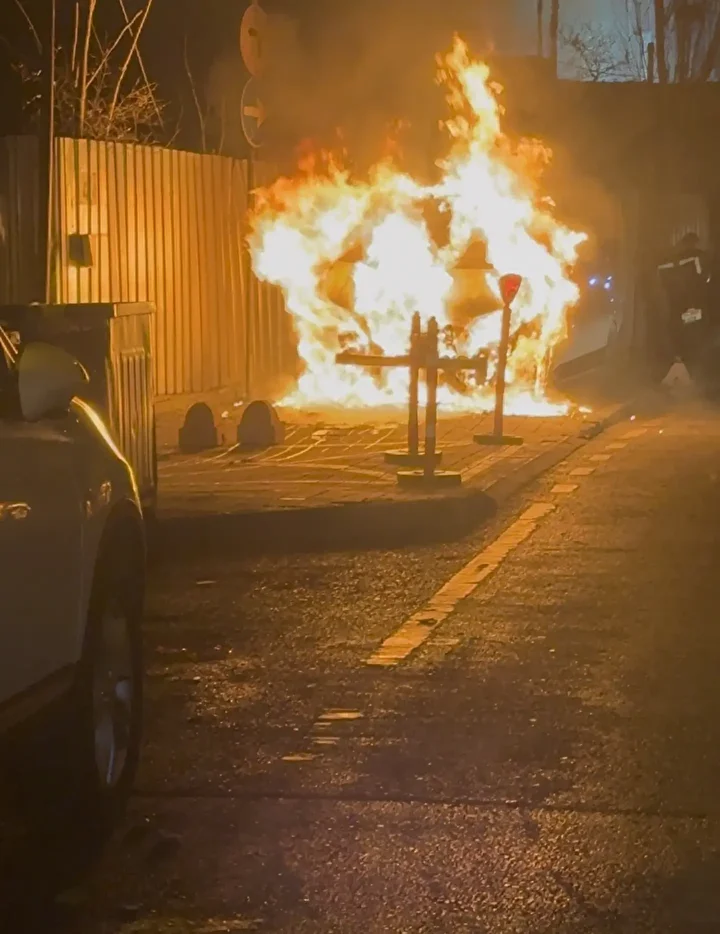 Kısa sürede büyüyen alevler araçta patlamalara neden oldu. Çevredekilerin ihbarı üzerine adrese itfaiye ve polis ekipleri geldi. Yangın itfaiye ekipleri tarafından söndürüldü.