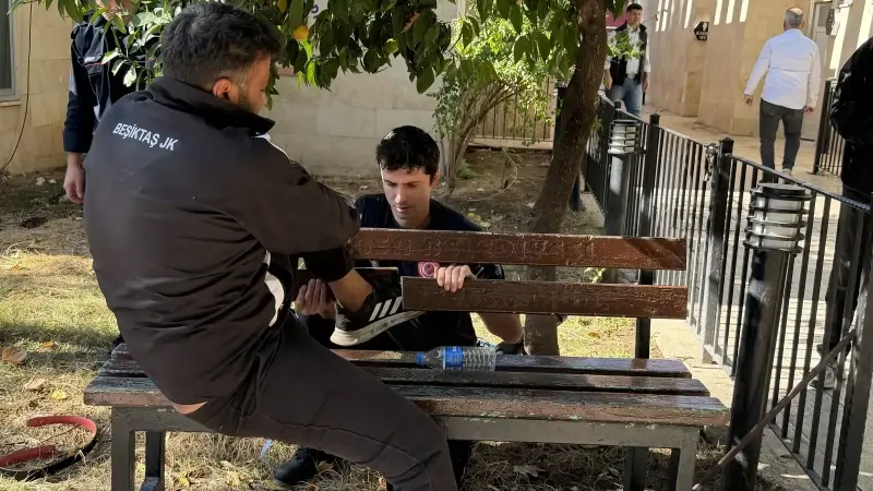 Kısa sürede gelen itfaiye ekibi, Seymen'in bacağını kurtarabilmek için elektrikli testereyle bankın tahta kısmını kesti.