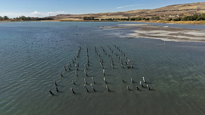 Tarihi kalıntıların, mikrobiyalitlerin (dikit), eski yerleşim alanlarına ait yapı kalıntılarının görülebildiği göl kıyısında, yıllardır su altında olan bazı kalıntılar da çekilmeyle birlikte görünür hale geldi.
