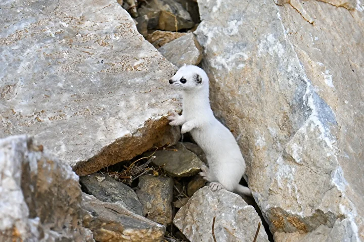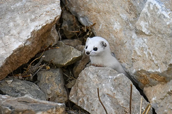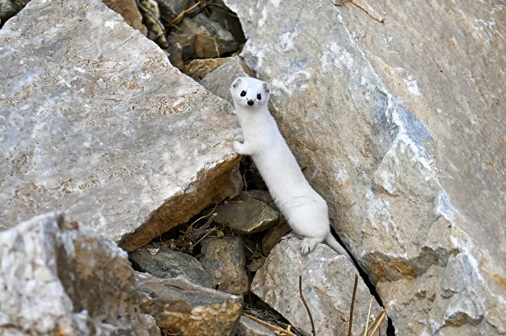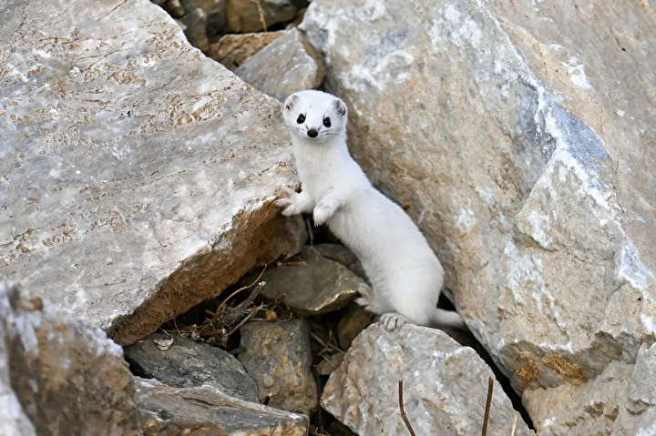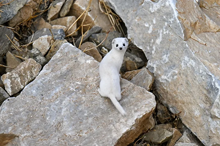 Yaz aylarında kahverengi olan tüylerinin kışın beyaza dönüşmesiyle bambaşka bir güzelliğe sahip olan gelincikler, doğada nadir rastlanan ve nesli koruma altında bulunan hayvanlar arasında yer alıyor.