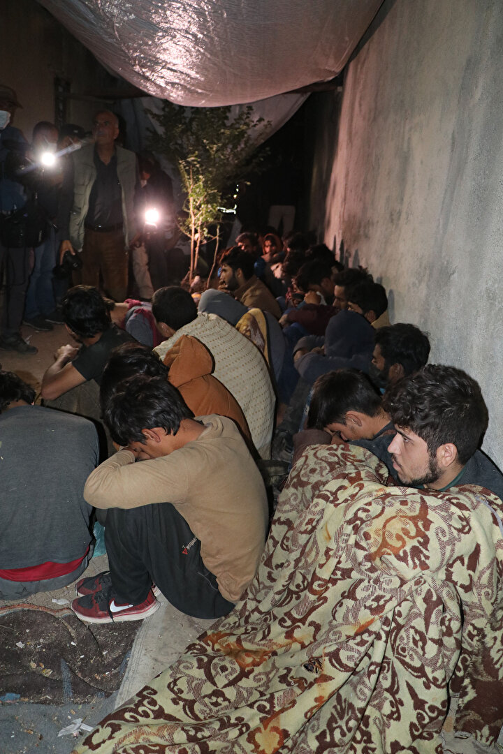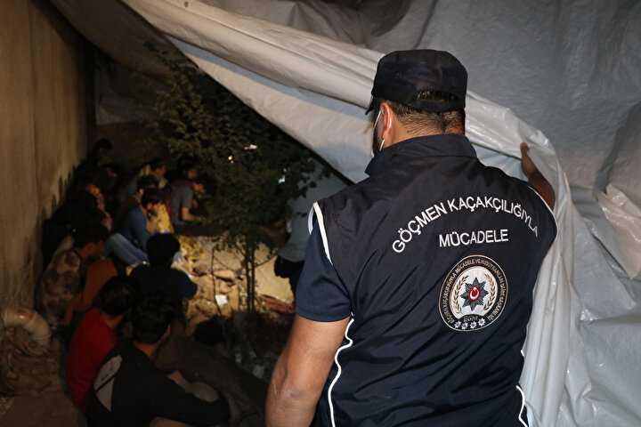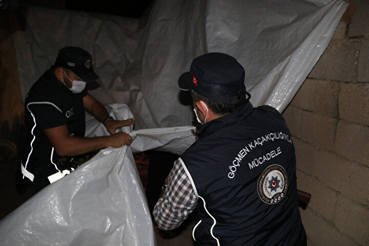 Göçmen Kaçakçılığıyla Mücadele, Terörle Mücadele ve Özel Harekat polislerinin katıldığı operasyonda, iki katlı binanın arka duvarı üzerine branda ile kapatılan alanda balık istifi 25 kaçak göçmen yakalandı.