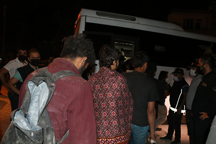 Günlerce aç ve susuz kalan, bitkin olduklarını gözlenen kaçak göçmenler, ekipler tarafından polis araçlarına bindirilerek işlemleri için Emniyet Müdürlüğüne götürüldü.