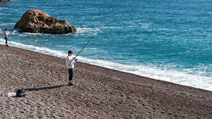 Antalya'da dün etkili olan yağışın ardından kentte güneşli hava hakim oldu. Amatör balıkçılar, denizde oluşan dalgalar eşliğinde Konyaaltı sahilinde olta attı.