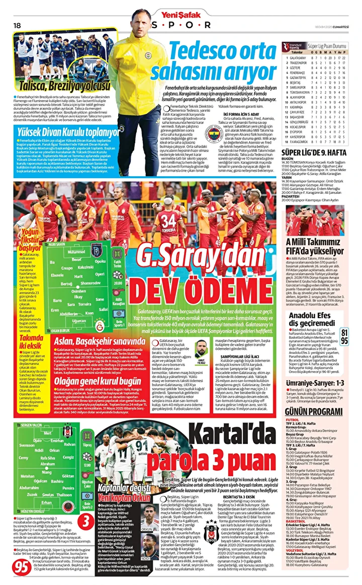 Yeni Şafak Gazetesi'nin 18 Ekim 2025 tarihli sayısına hoş geldiniz. Gündem, spor ve ekonomi sayfalarımızda bugünün öne çıkan haberlerini keşfedin.