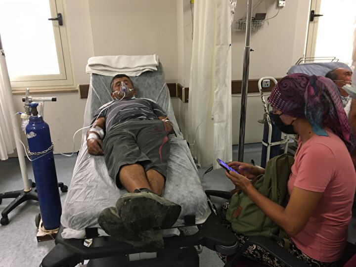 İlçede devam eden orman yangınından etkilenenlerin hastanelerde tedavisi sürüyor.