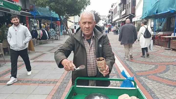 Edirne’de 73 yaşındaki Yılmaz Erol, 50 yıldır seyyar tezgâhında kestane satarak geçimini sağlıyor.