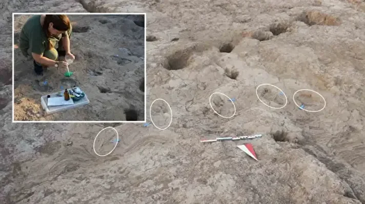 3 yıldır ekibiyle birlikte yaptıkları kazılar ardından ayak izlerini keşfeden Arkeolog Doçent Dr. Rana Özbal, ayak izlerinin çamur ve su birikintilerine maruz kalmış toprak dokusu içinde keşfedildiğini ve o tabakanın günümüzden 7 bin 200 yıl öncesine ait olduğunu tespit ettiklerini söyledi.
