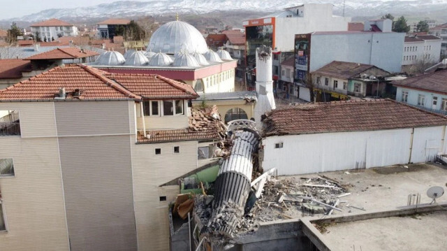 Devrilen minare apartmanın 3. katını ikiye böldü. Devrilen minare aynı zamanda 4 parça haline gelirken, iki parçası cami ve apartman önüne, iki parçası ise bölünen apartmanın içerisinde kaldı.
