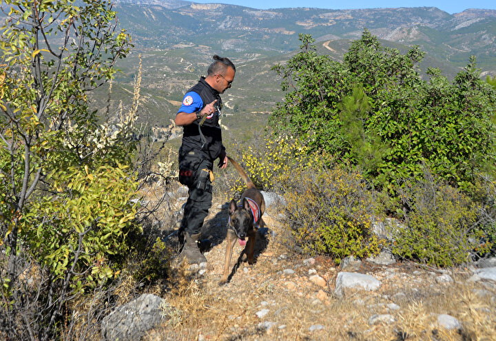 Ekipler, sarp dağlık bölgedeki vadi, orman ve dağlık alanda çalışmasını sürdürürken, aramada iz takip ve kokuya duyarlı köpekler de kullanılıyor.