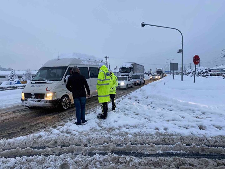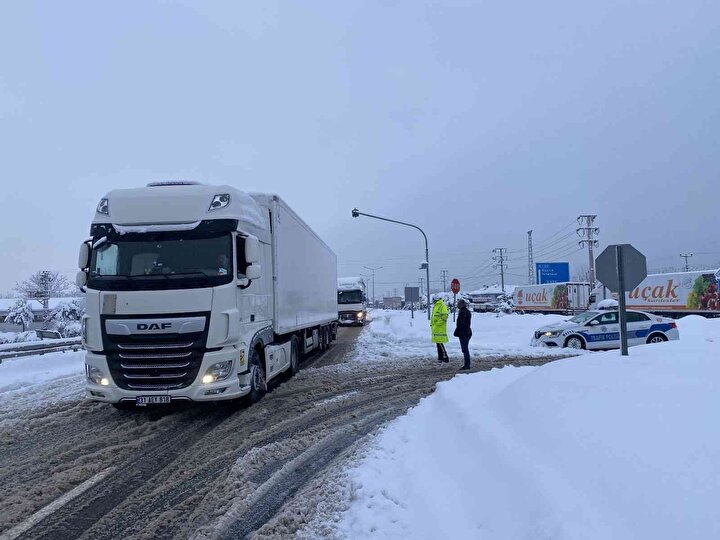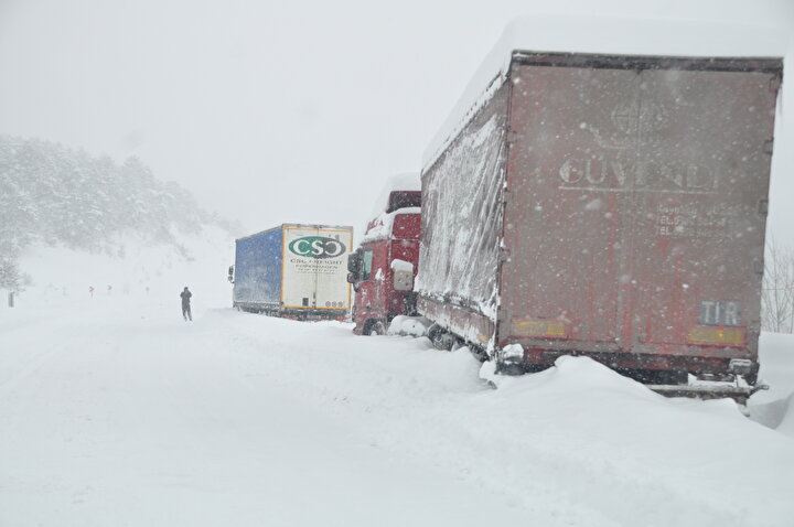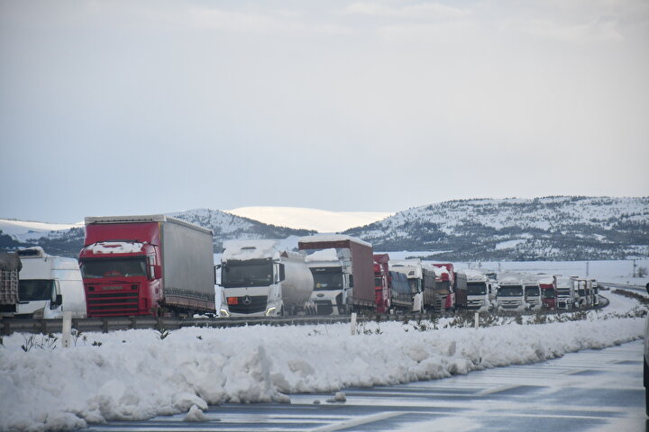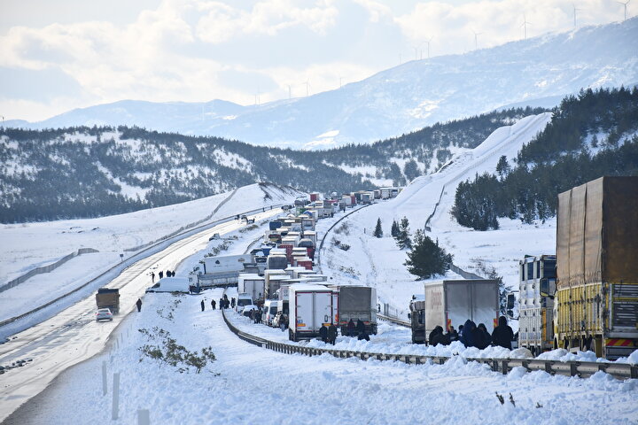 Zincirsiz tırların Bolu Dağı'ndan geçişine izin verilmediğini bildiren yetkililer, Türk Kızılay ekiplerince 150 kilometrelik güzergah boyunca yol kenarındaki araçlara yiyecek ve sıcak ikram dağıtımı yapıldığını kaydetti.