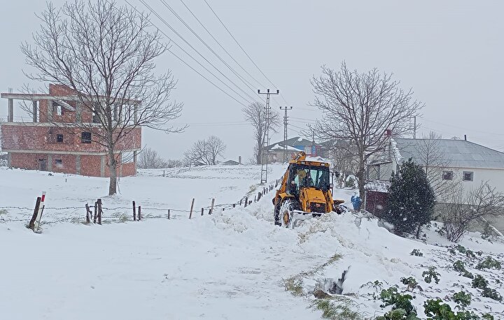 Sakarya'da kar yağışı nedeniyle bazı ilçelerde mahalle yolları kapandı.