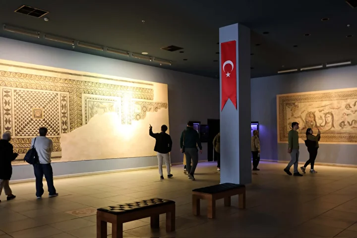 Müzenin en önemli eserlerinden ve kentin simgesi olan, milattan sonra 2'nci yüzyıl tarihli 'Çingene Kızı' mozaiği, en çok ilgi gören eserler arasında yer alıyor. Ayrıca 2018 yılında ABD'den Türkiye'ye getirilen 12 parçasının da sergilendiği mozaikler, müzenin ziyaretçilerinin ilk uğrak noktası oluyor.