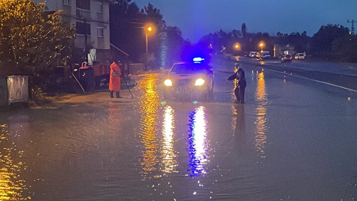 Karayolları ekipleri de güzergahta önlem aldı. Yolda biriken sular nedeniyle araçlar ilerlemekte güçlük çekerken, belediye ekiplerince yolda temizleme çalışması yapıldı.