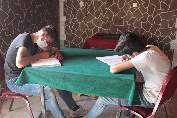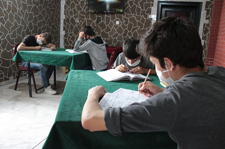 Evleri kalabalık olduğu için evde ders çalışamayan ve bu yüzden amcası Çetin Aslan’ın kapattığı çay ocağında ders çalışmak istediğini dile getiren Ağrı Naci Gökçe Anadolu Lisesi 3’üncü sınıf öğrencisi Naci Aslan, "Burası amcamın çay işletme ocağıydı. Covid-19 salgınından dolayı amcam iş yerini kapattı. Amcam burayı kapattıktan sonra biz de burada sosyal mesafe, maske kurallarına uyacak şekilde ders çalışmaya karar verdik. Ders çalıştıktan sonra kafa dağıtmak için her 3 saatte bir en çok test çözümü yapan iki kişi oyun oynuyor" ifadelerini kullandı.