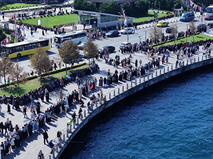 AK Parti Kadın Kolları, Gazze’de yaşanan zulme dikkat çekmek için İstanbul Üsküdar Meydanı’nda "Gazze İçin Sessiz Çığlık" adıyla düzenlenen etkinlikte, ellerini kenetleyerek sahil hattı boyunca zincir oluşturdu.