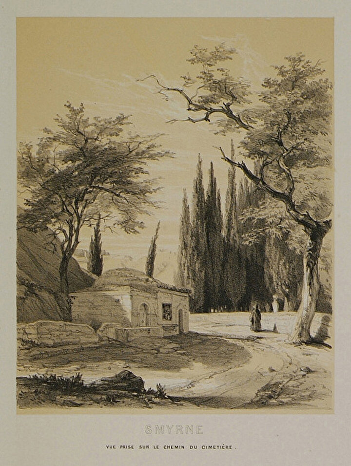 İzmir'den Bornova banliyösüne giden yolda Müslüman mezarlığı.